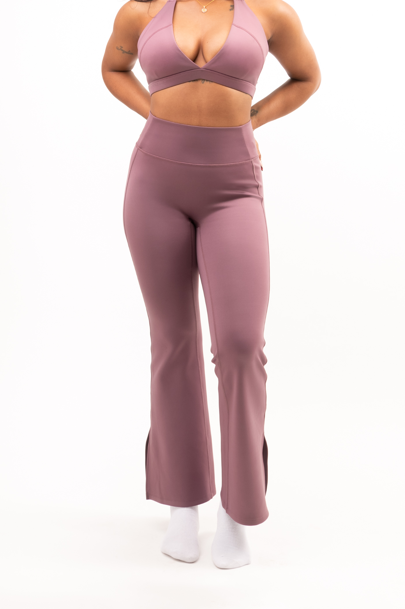 Meet the Resolute Flair Legging— your new go-to for comfort and contour. Built from a thick, durable fabric that hugs you in all the right places. The gentle butt scrunch and shaping waist seams create a flattering silhouette, finished with a wide, supportive waistband that stays secure without ever feeling restrictive. The flared leg with a sleek slit adds an elevated, on-trend touch. Designed to fit women 5’7” and under (don’t worry, a tall version is on the way!).